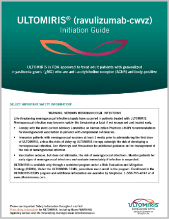 This comprehensive resource provides an overview of topics when commencing treatment for gMG, such as prescribing ULTOMIRIS for appropriate patients; dosing guidelines, including weight-based dosing; ordering, storing, and administering ULTOMIRIS; vaccination prior to ULTOMIRIS treatment; the REMS program; OneSource; and the CoPay Program.