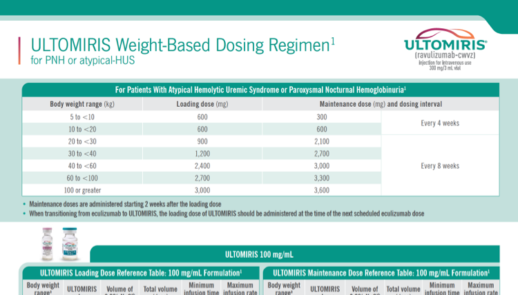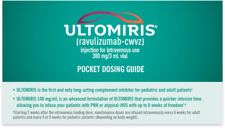 A portable, easy-to-use resource that provides essential information on the recommended dosage and administration of ULTOMIRIS.